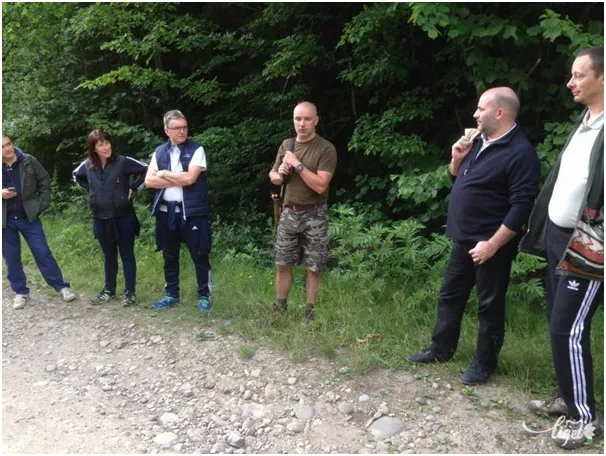 După vreo doi kilometri de mers pe jos, pădurarul ne spune cu voce coborâtă: „Așteptați un moment și dacă ridic degetul în sus și vă fac semnul