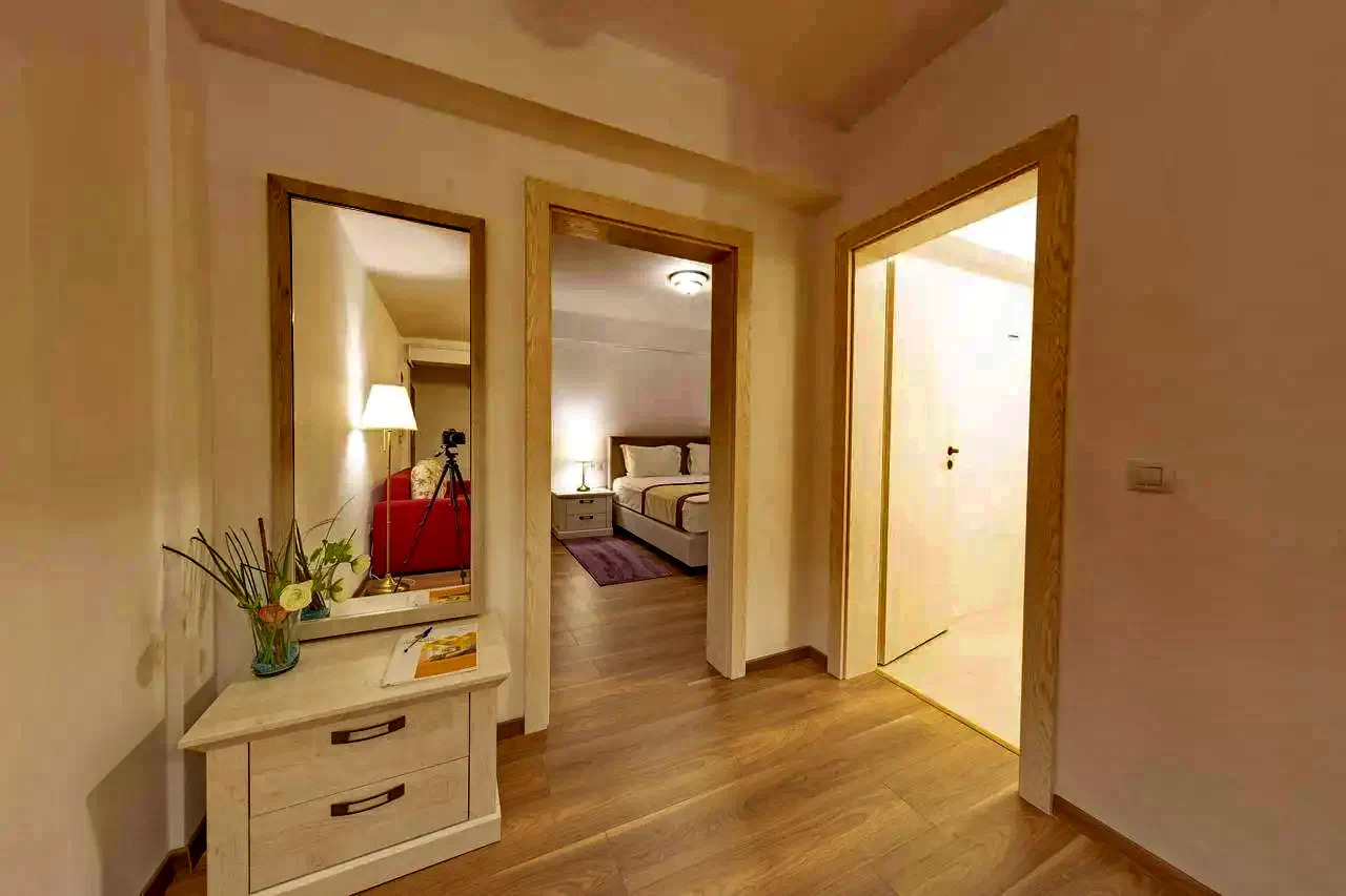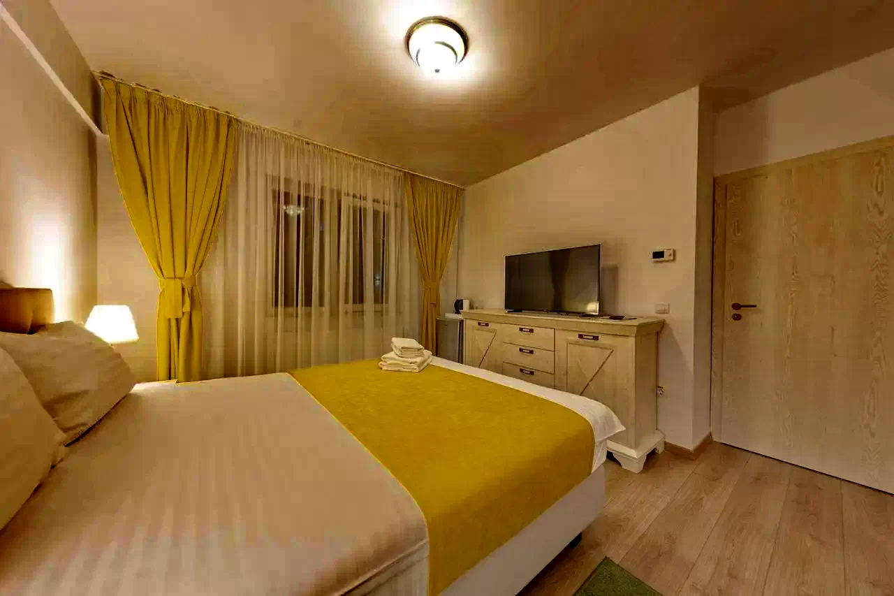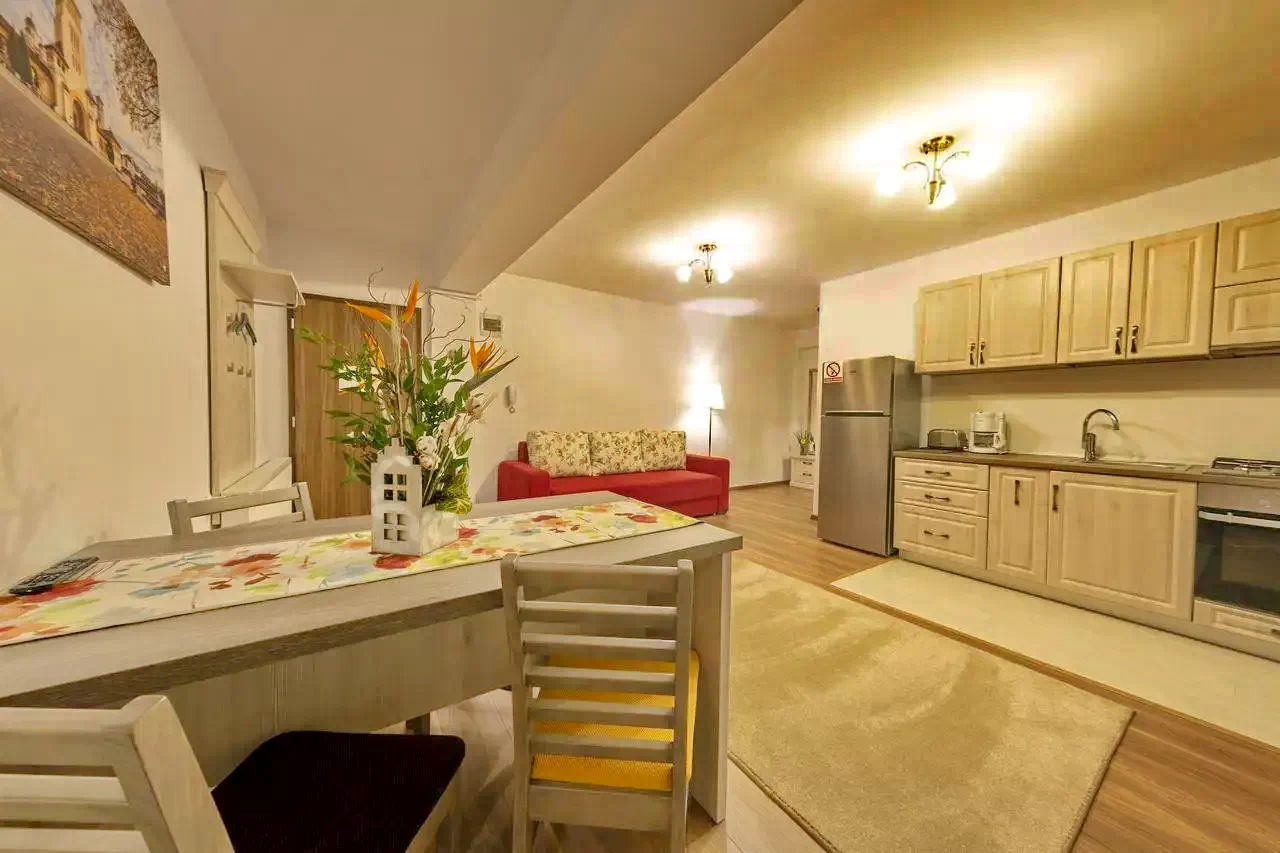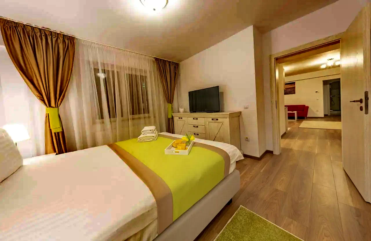 Pentru a asigura confortul oaspeților, apartamentele sunt dotate cu mobilier și accesorii de calitate. Pe lângă cromatica variată, vă puteți bucura de următoarele facilități: Bucătărie: frigider, cafetieră, prăjitor de pâine, farfurii, pahare, căni, tacâmuri. Living: TV LED 102 cm(diag), cablu TV, internet wireless, paturi king size deosebit de confortabile, ușor convertibile în paturi twin, canapele extensibile, fotolii, draperii cu black/out, birou, scaune comode de birou Baie: cada cu paravan, uscător par. Deasemenea dorim să menționam faptul că sunt foarte bine aerisite.