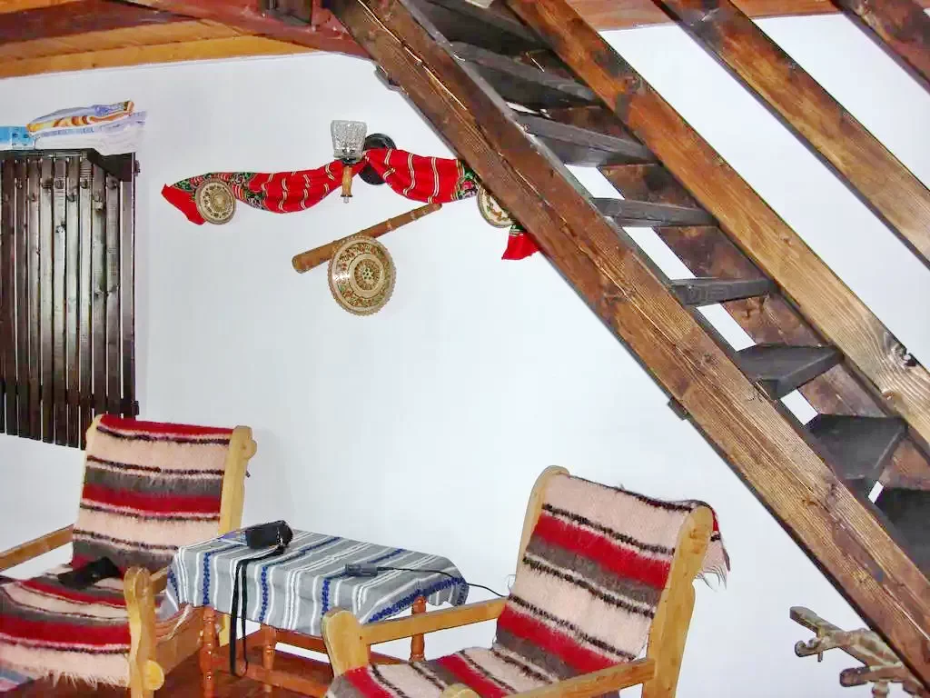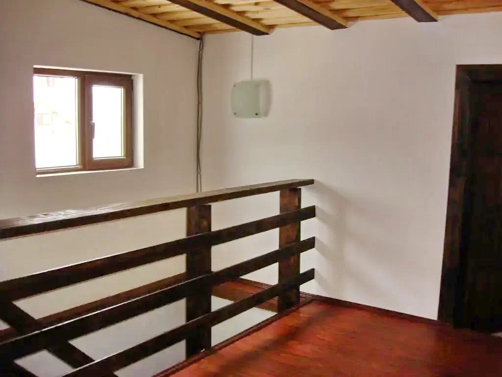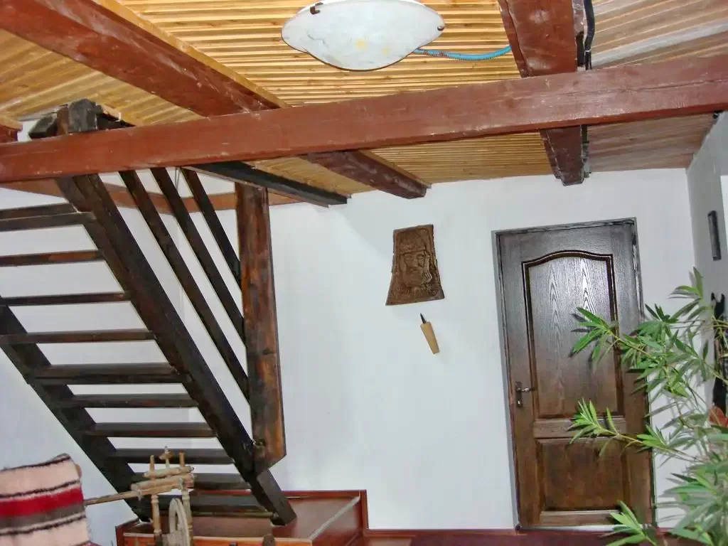 Scara care duce la etaj este din lemn si completeaza aceasta idee de autenticitate romaneasca.