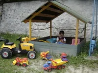 Casa mai mare dispune de o bucatarie dotata, o camera de zi, si un grup sanitar la parter.