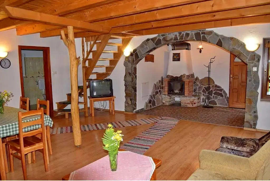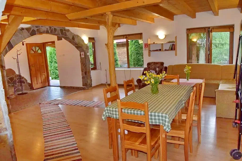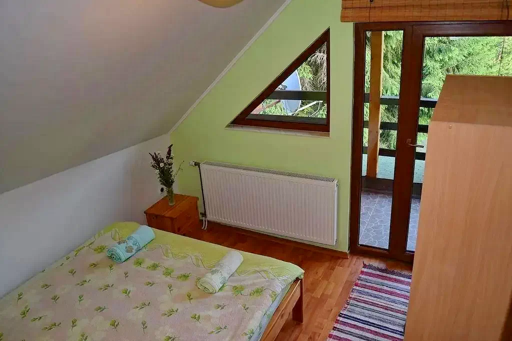 Este compusa din bucatarie, camera de zi cu canapea extensibila, televizor, dormitor si baie, incalzire cu soba de teracota. In curtea casei, care este strabatuta de un parau, este loc pentru a face gratar. In curte este loc special amenajat pentru sporturi, respectiv un leagan.