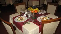 Restaurantul asigură o atmosferă deosebită pentru 50 de persoane, iar pe terasa de vară mai sunt 30 de locuri. În cafenea servim cafea italiană şi diverse băuturi pentru 20 de persoane. Deservirea este amabilă şi familiară, de dimineaţa până seara târziu.