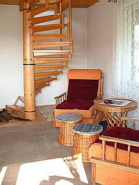 La parter se afla camera de zi - sufrageria, bucataria si baia.