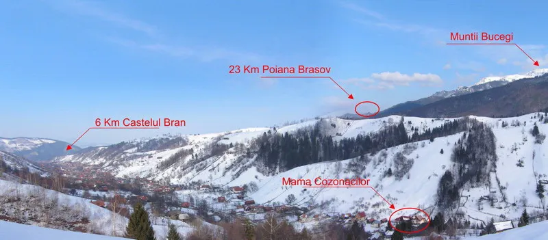 Brasov, si la 190 km de la Bucuresti. Este asezata in cel mai cunoscut si mai frumos areal cu turism rural din Romania, zona Bran-Rucar.