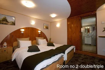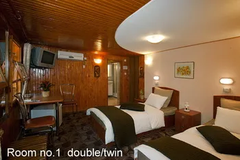 Va ofera 22 locuri de cazare in 11 dormitoare duble cu baie proprie, trei living-uri, apa calda permanent, aer conditionat, TV color, telefon.
