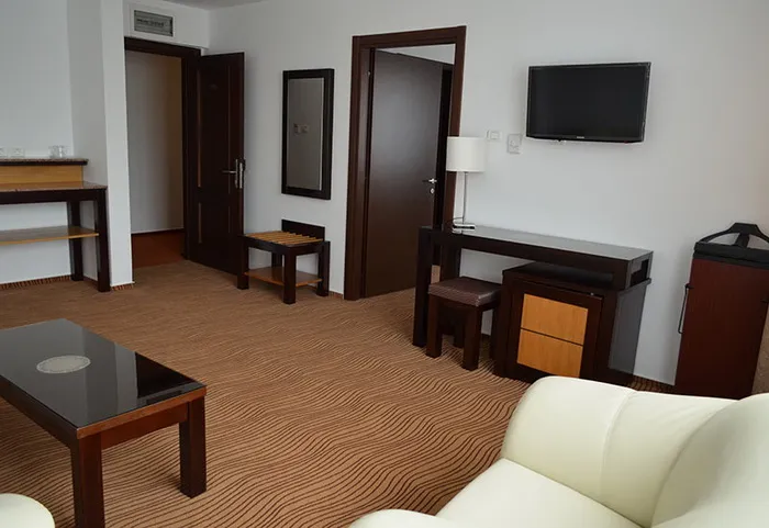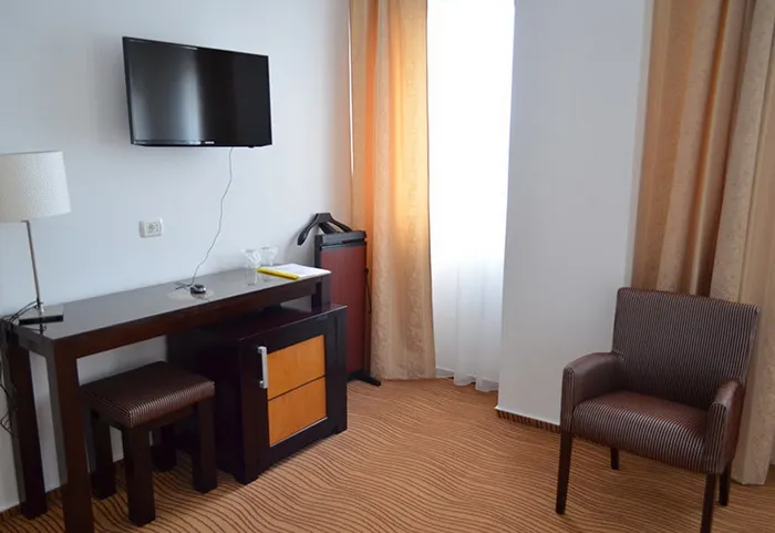 Hotelul dispune de 110 camere (39 single matrimoniale, 65 duble twin si 6 apartamente), 2 lifturi, spatii largi de receptie, 3 sali de conferinta, bar cu terasa in aer liber pe timpul verii precum si parcare gratuita pentru clienti. Deasemeni restaurantul nostru va asteapta pentru a servi masa intr-un cadru placut sau pentru organizarea de evenimente speciale.