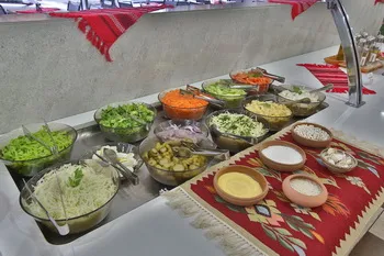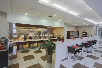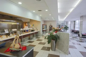Restaurant sistem self-service: Luni- Vineri intre orele 12.30 – 15.00 cu meniuri care includ supe, feluri principale, preparate la gratar, garnituri, precum si deserturi si bauturi.
