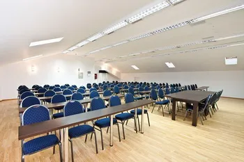 2 Sali de conferinta moderne si elegante, dotate la standard (telefon/fax, video-proiector, flip- chart, ecran de proiectie, microfoane wireless, sonorizare, sistem de auditie si amplificare, televizor color, DVD, climatizate ) cu o capacitate maxima de 200 si respectiv 70 de locuri.