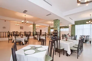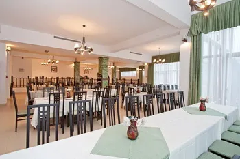 Pranzul se poate servi in regim a la carte, in restaurantul Salonul verde, situat la parter