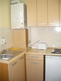 Bucatarie complet utilata si dotata cu vesela, tacamuri, pahare, cesti, oale pentru gatit