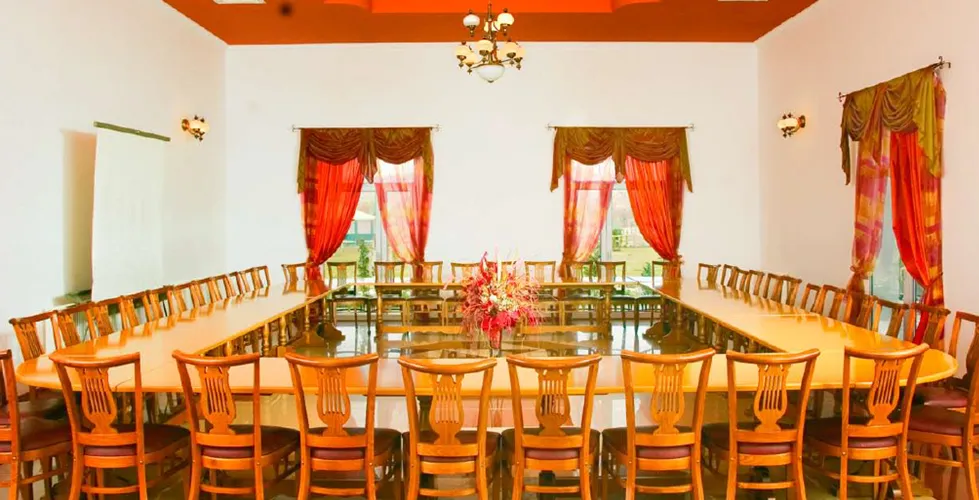 Sală conferinţă cu o capacitate de 70 locuri dotată cu videoproiector, ecran, flipchart, televizor, cablu tv, conectare la internet, lumină naturală, multiple posibilităţi de aranjare