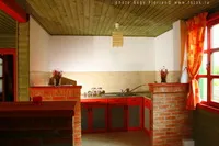 Bucataria este complet utilata: frigider. cuptor cu microunde, plita electrica, chiuveta, tacamuri si oale.