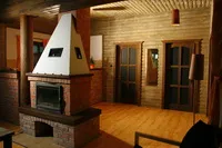 La parter este o sufragerie cu locuri pentru 16 persoane, semineu, bucatarie dotata, si toaleta femei si barbati.