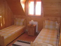 In a doua si a treia camera sunt in fiecare cate doua paturi simple in mansarda (etaj II) sunt inca inca doua locuri de rezerva.