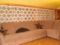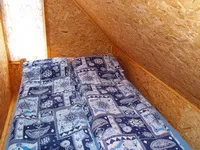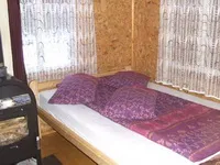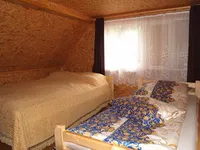La etaj se ajunge urcand o scara putin abrupta. Aici gasiti patru camere. Fiecare camera este dotata cu cate un pat dublu. (in total: 8 + 2 persoane!)