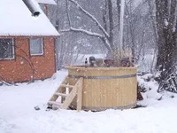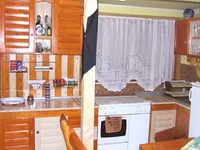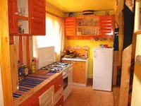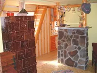 Gatitul in bucatarie pe aragaz. incalzire in soba de teracota si semineu. Apa calda se obtine cu ajutorul boilerului pe baza de gaze.