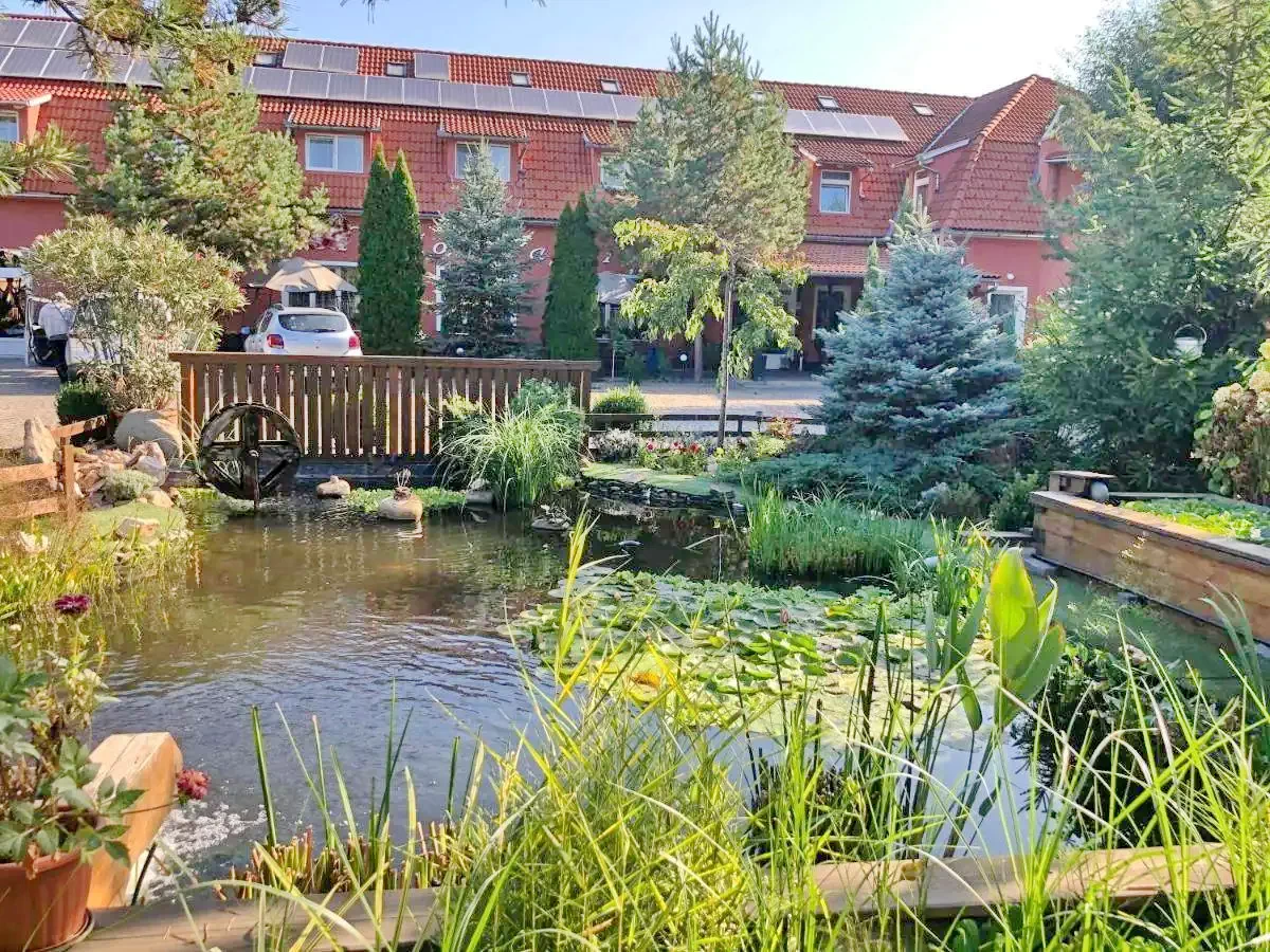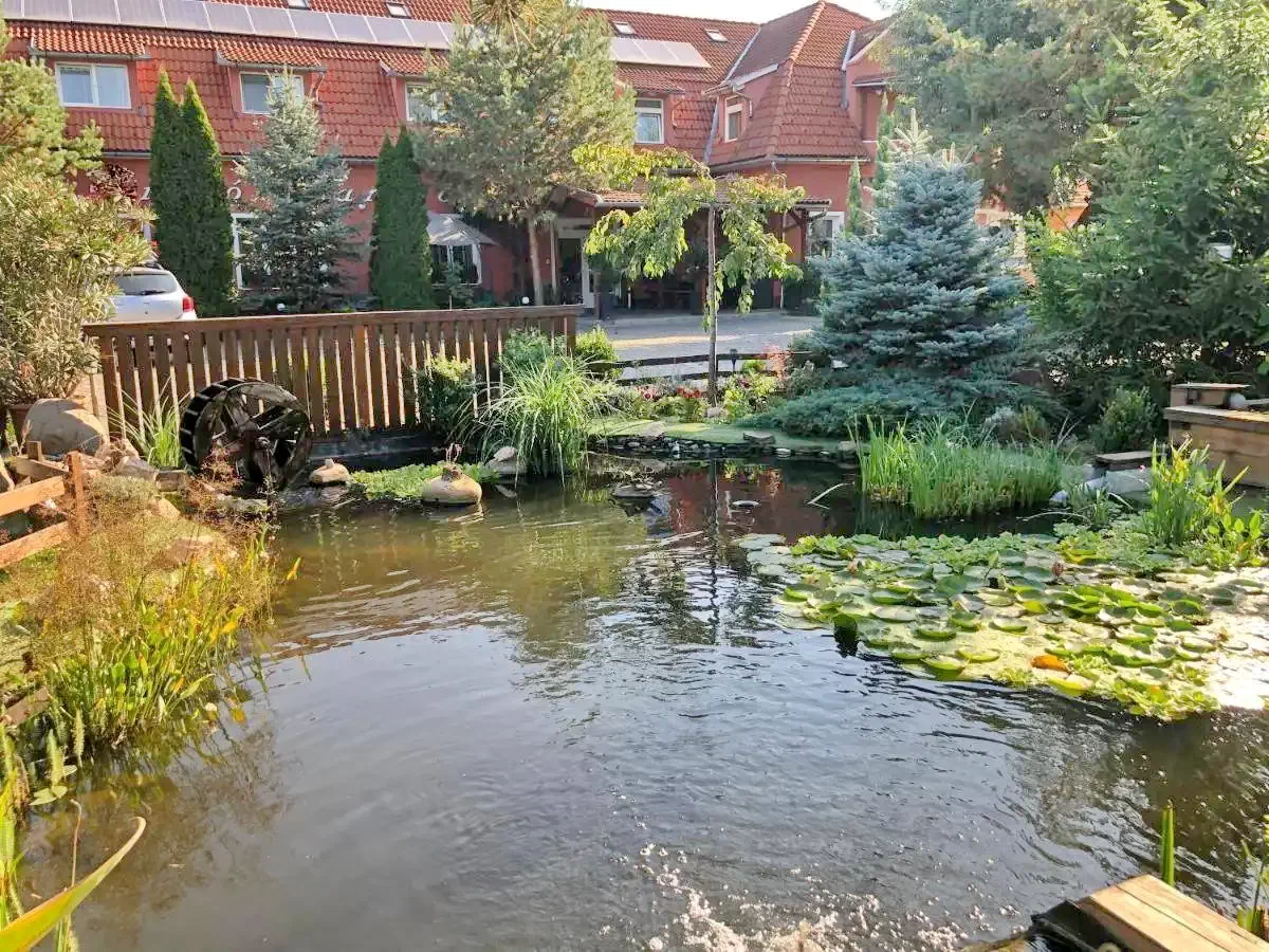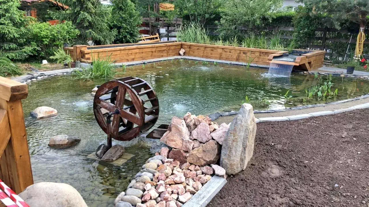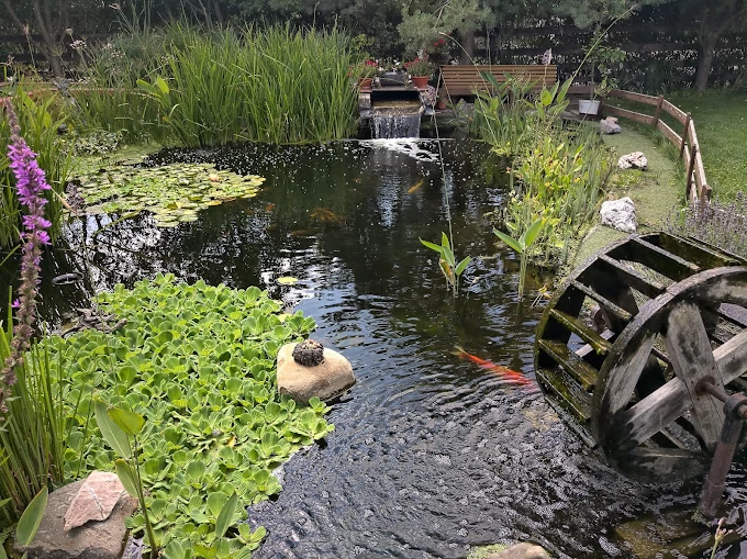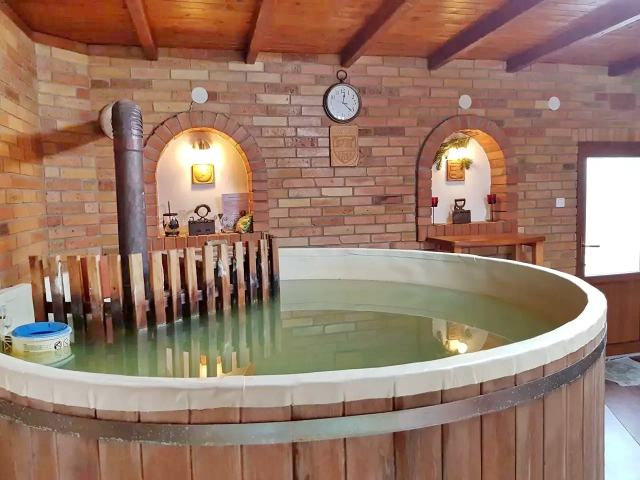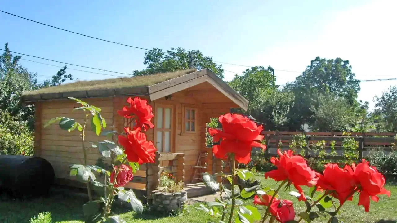 In grădina curţii se află o căsuţă rustică de lemn pentru două persoane, şi o fântână arteziană.