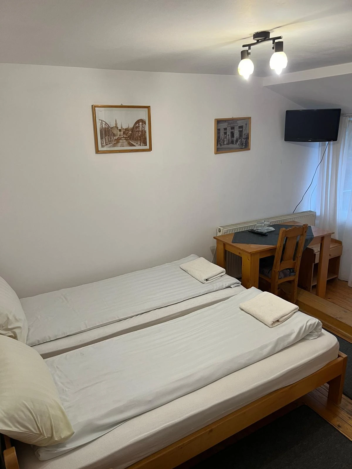 Pensiunea este compusa din doua parti, una mai rustica (cu camere si bai mai mici) si una mai moderna.