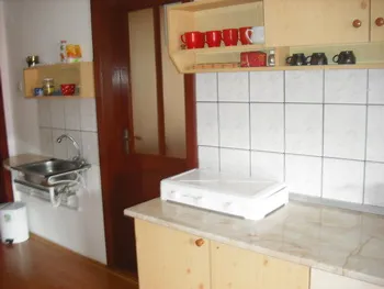 etaj: 1 apartament pentru 3 persoane: camera cu 2 paturi, bucatarie, baie