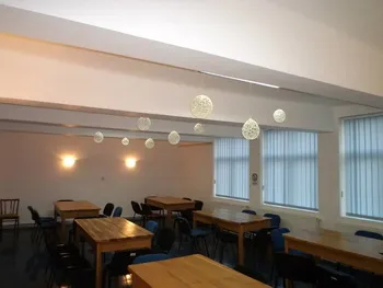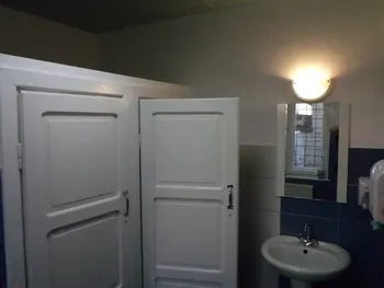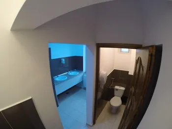 - grup sanitar cu intrare de pe hol - doua bai (separat pe sexe) in fiecare baie doua dusuri, doua chiuvete, un WC, la barbati si un pisoar