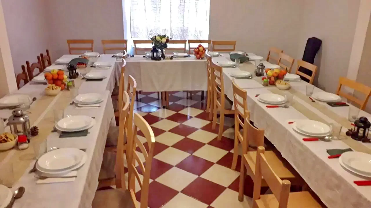 La parter este amenajată bucătăria şi sala de mese.