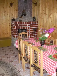 - sufragerie, cu coltar extensibil (poate fi folosit pentru cazare in cazul unui grup mai mare), 25 m2, minibar si semineu