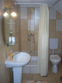 - 1 baie comuna, care poate fi considerata una din baile proprii ale unui dormitor aflat la etaj;