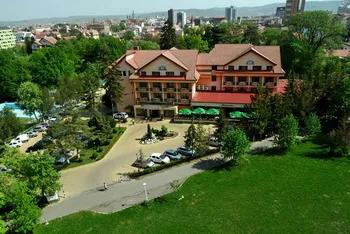 Situat intr-un cadru natural deosebit, la intrarea in Parcul "Sub Arini", aproape de centrul istoric, hotelul dispune de o parcare generoasa si de o terasa exterioara cu functionare sezoniera.