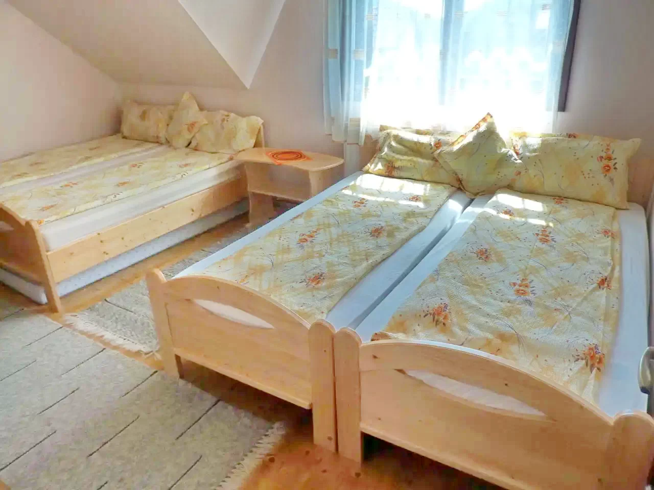 sunt patru camere. In prima camera exista un pat dublu, iar in urmatoarea camera este un pat simplu si unul dublu. Cele doua camere dispun de o baie comuna. In cea