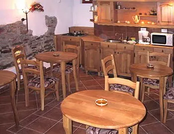 * la dispozitia clientilor sta o bucatarie de 12 persoane complet utilata, vesela, tacamuri, aragaz, cafetiera, cuptor cu microunde, frigider.