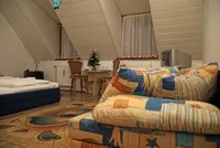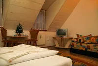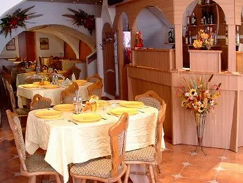 Hotelul are un restaurant-bar cu o capacitate de 48 locuri intr-un ambient placut si prietenos dupa stilul bavarez si un total de 36 locuri de cazare formate din 10 camere duble, 6 camere single, un mini apartament.
