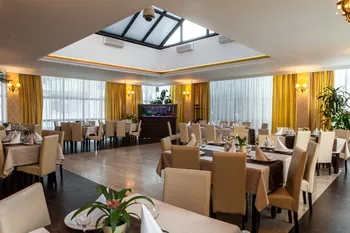 In restaurantul sau terasa hotelului, 120 de oaspeti isi pot satisface poftele culinare, alegand dintr-un bogat sortiment de specialitati romanesti sau internationale. Specialitatile gatite dupa retete alese, savurate impreuna cu vinuri de vita nobila atent selectionate se pot servi intr-o ambianta confortabila si relaxanta.