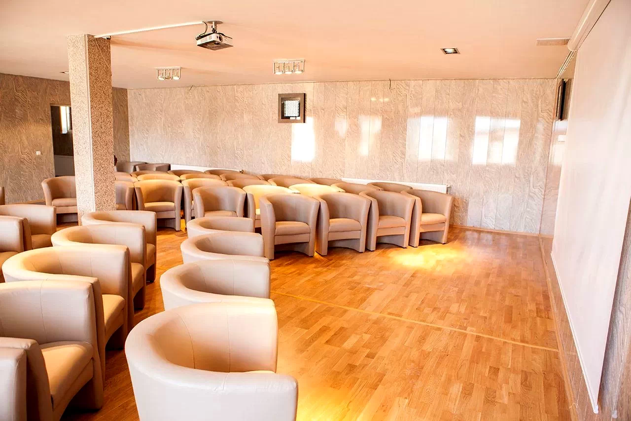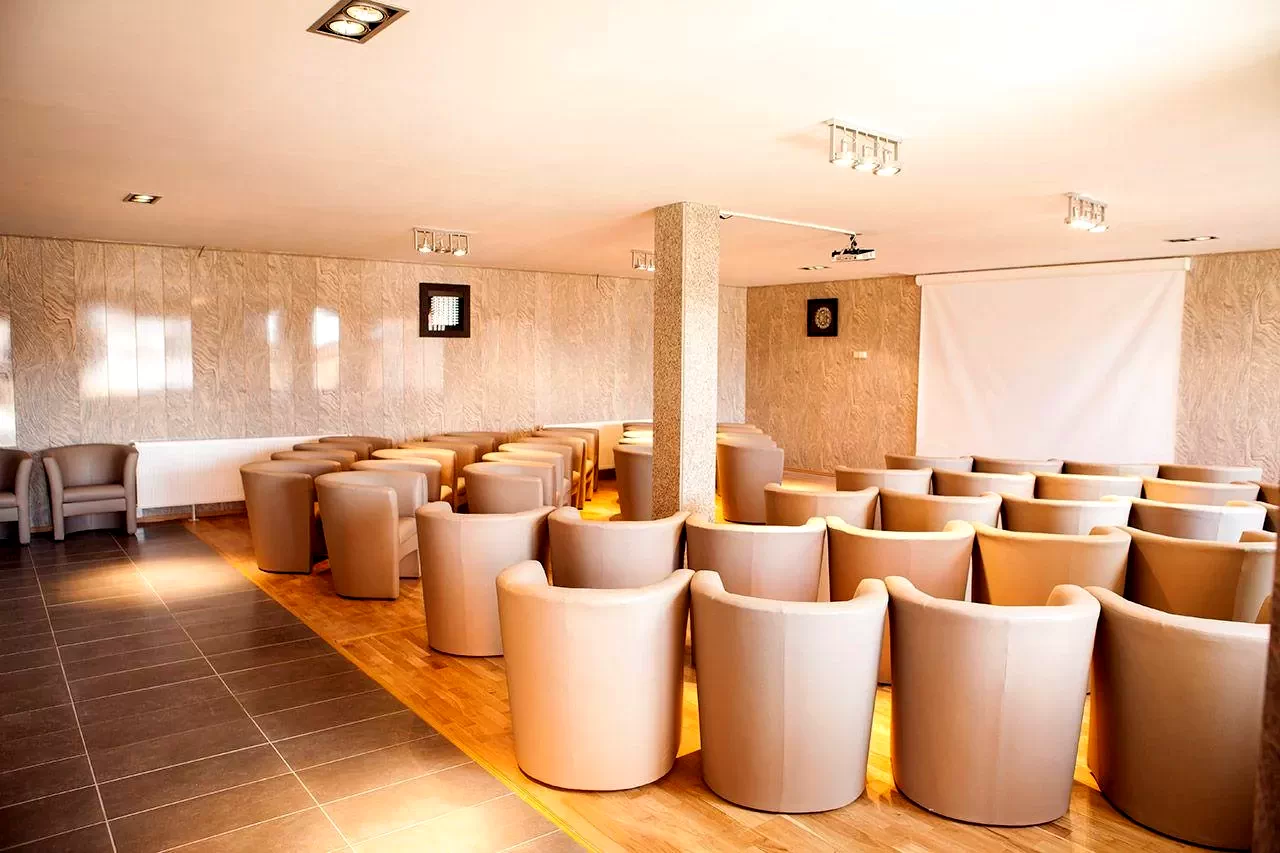 Sala de conferinte cu capacitate de 50 de locuri, dotata cu aparatura de ultima generatie.