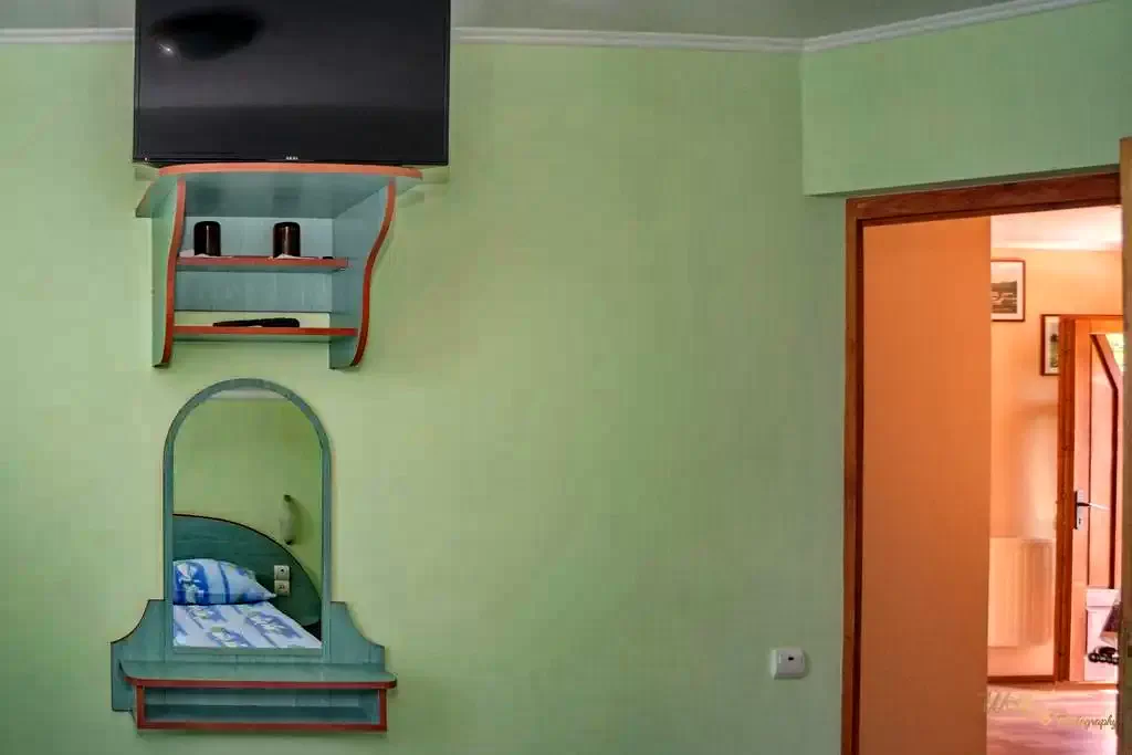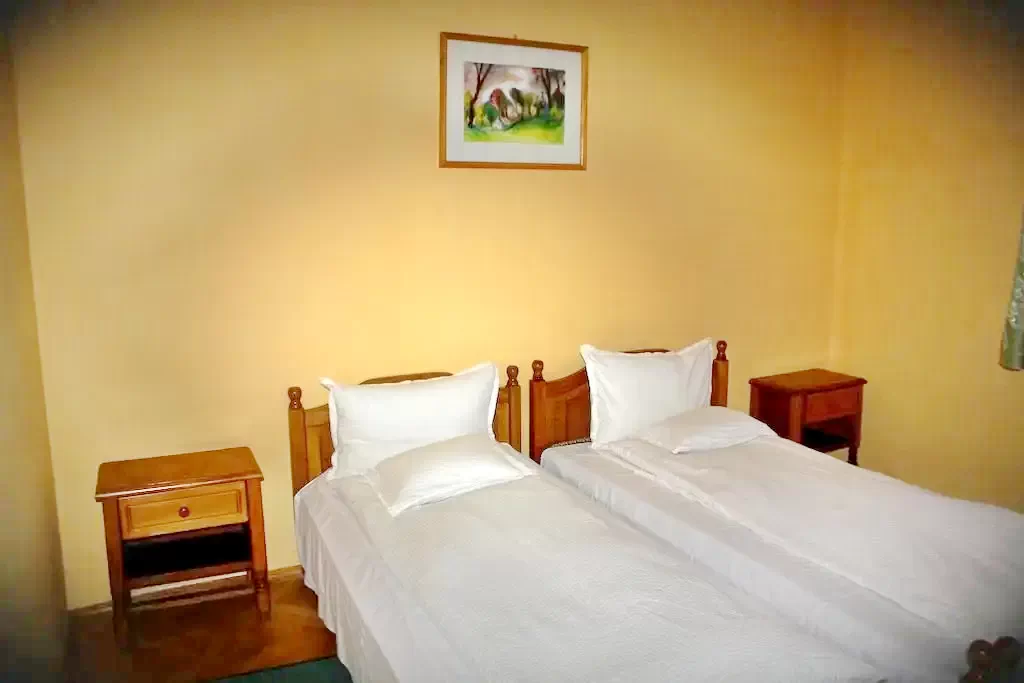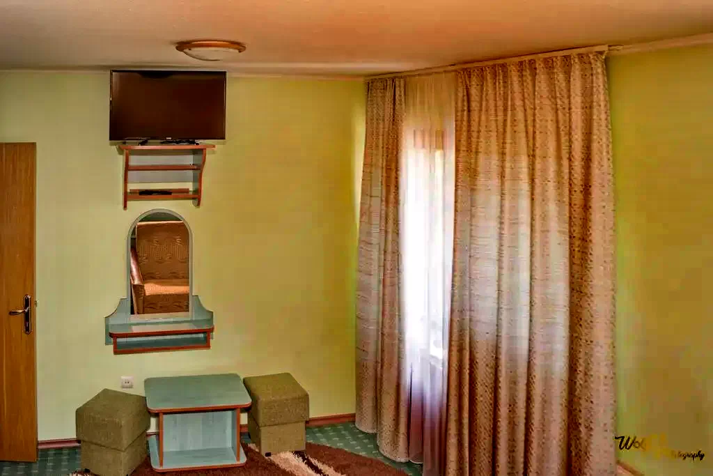 Casa de Vacanta Teiul ***, cu doua etaje din Sovata este situat in cartierul linistit de ville al orasului. La parter: bucatarie, grup sanitar, chiuveta + WC si 2 camere cu pat matrimonial (+1 pat suplimentar pentru 2 pers).