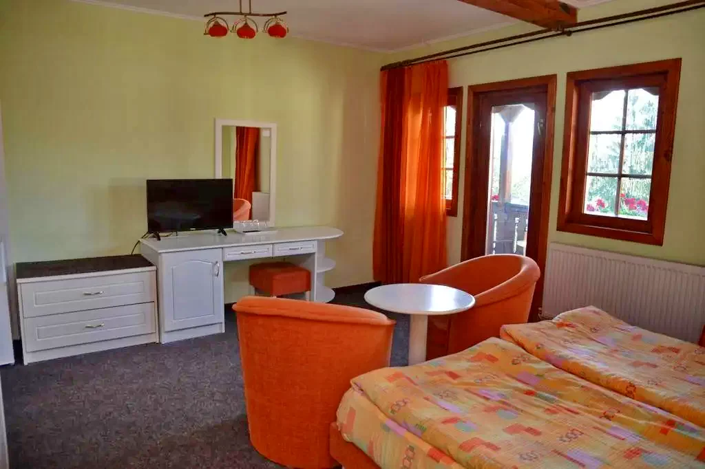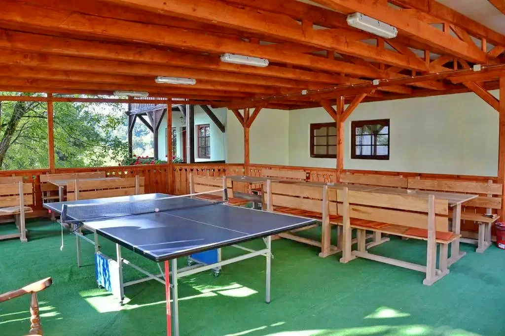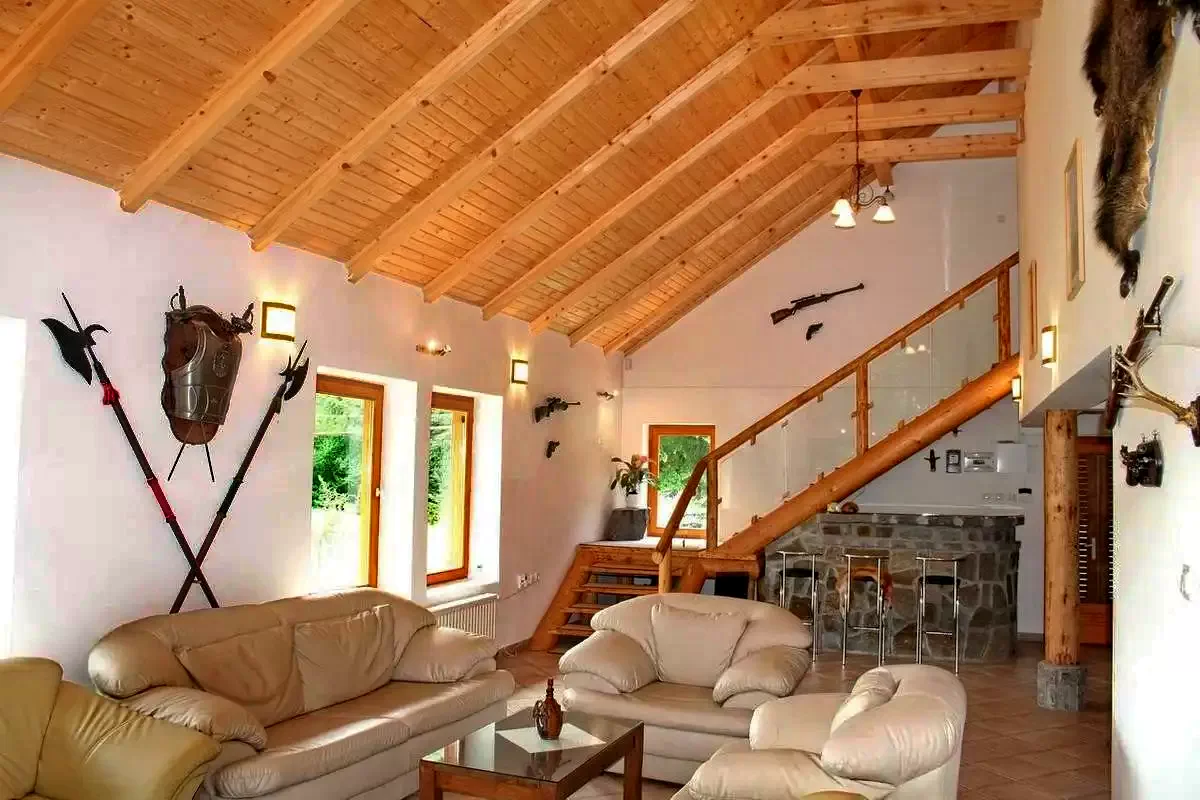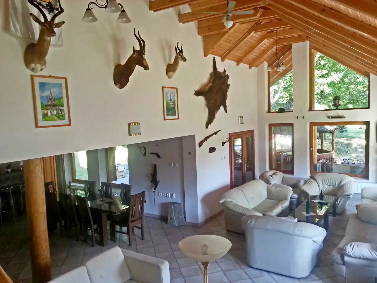 Casa de Vanatoare "Borbala"***, asigura conditii de nivel european. La etaj sunt doua camere confortabile si un apartament, iar la parter: un apartament, camera de zi de aproape 100 m2, cu atmosfera medievala, si sufrageria.