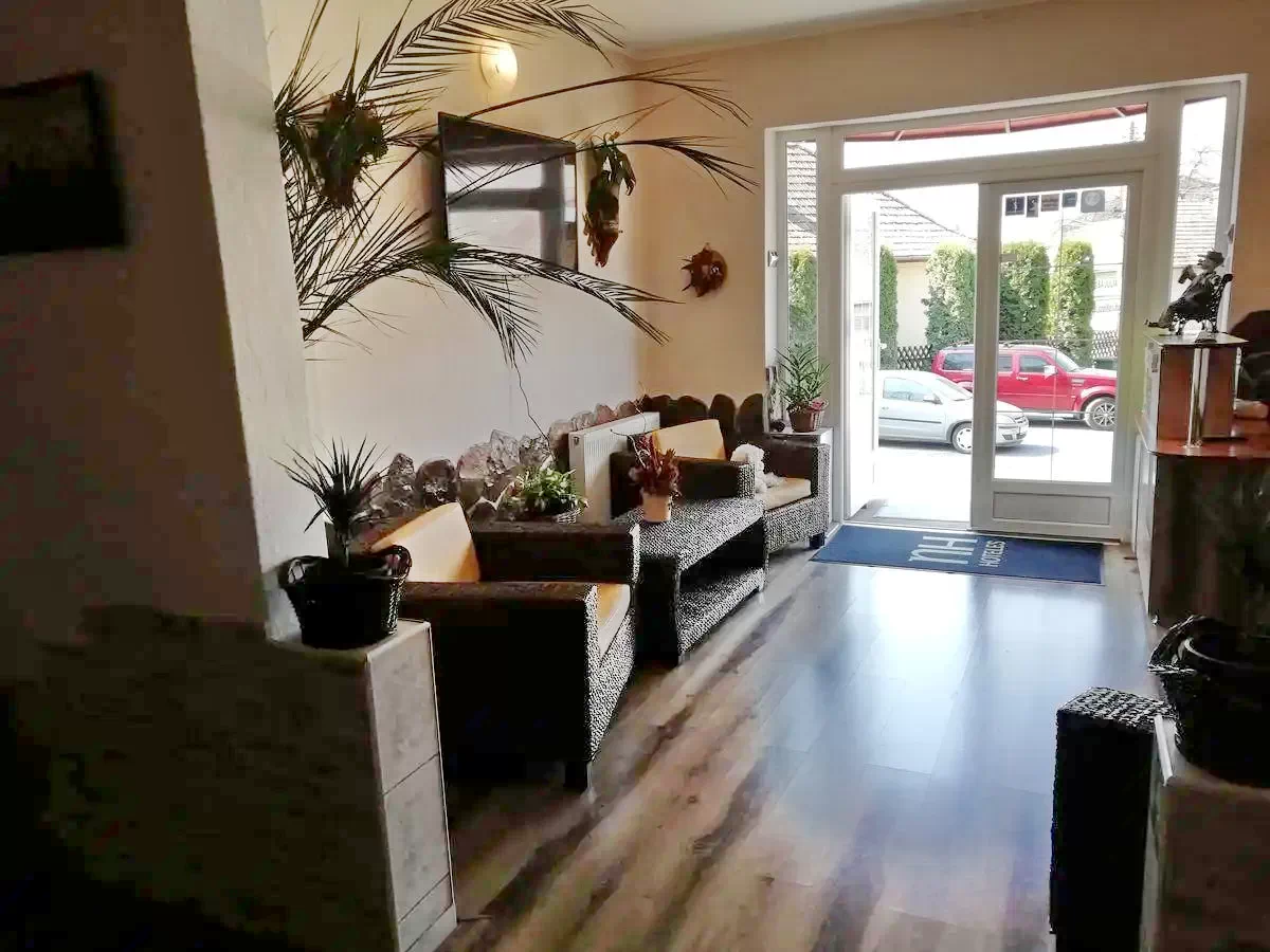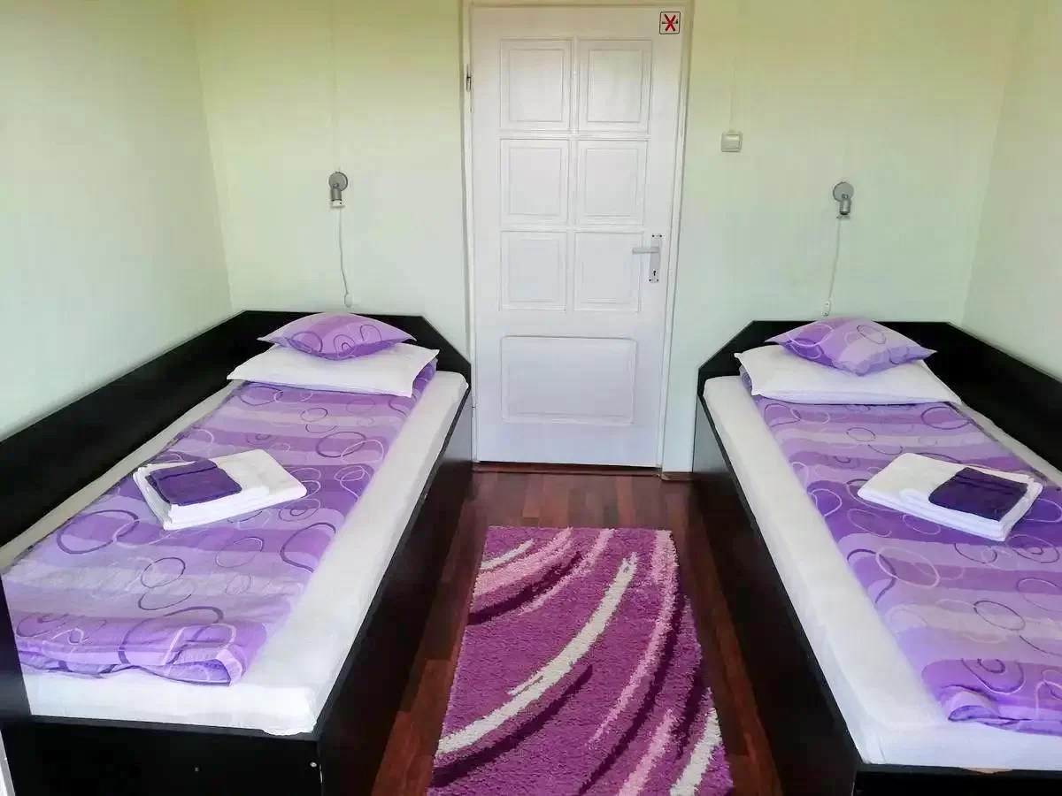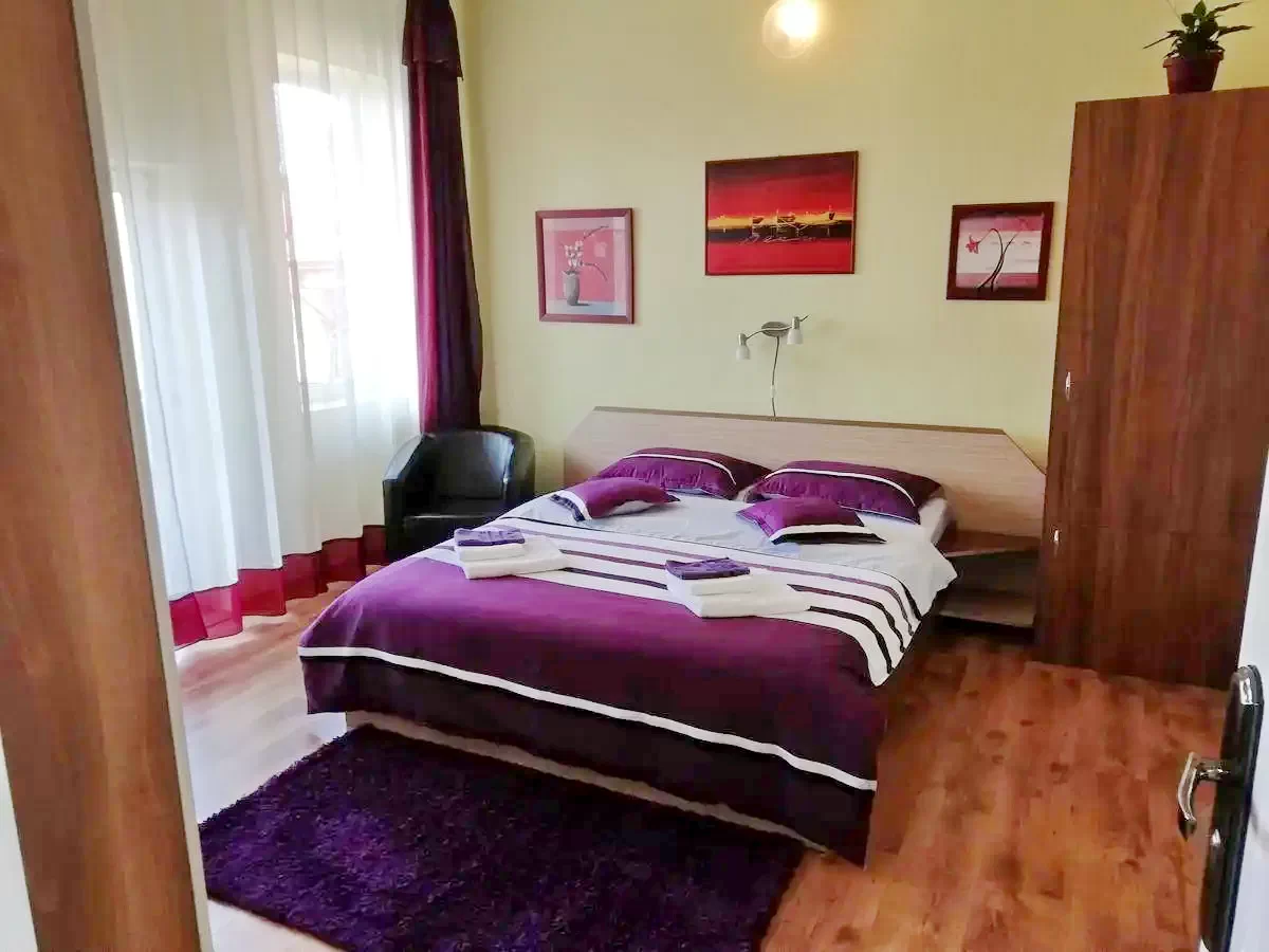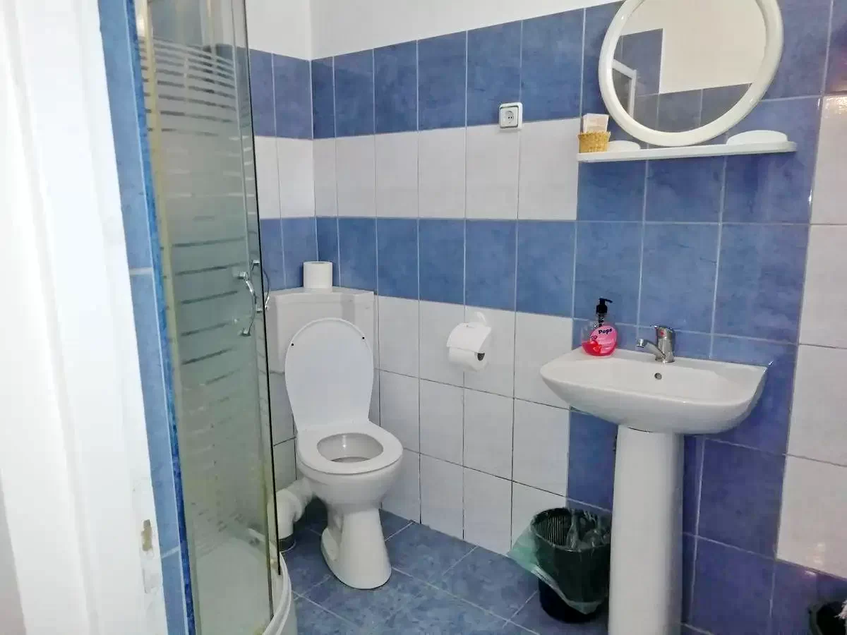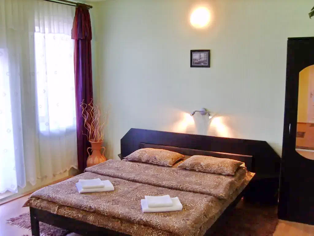 Pensiunea dispune de un apartament compus din 2 camere cu baie si bucatarie proprie, 6 camere cu pat matrimonial dotate cu TV, cablu TV si baie proprie, bucatarie dotata si utilata, living.