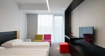 - 33 camere deluxe - cu o suprafata intre 22 si 27 mp, cu pat individual sau matrimonial. Camera spatioasa, zona de relaxare si zona de lucru