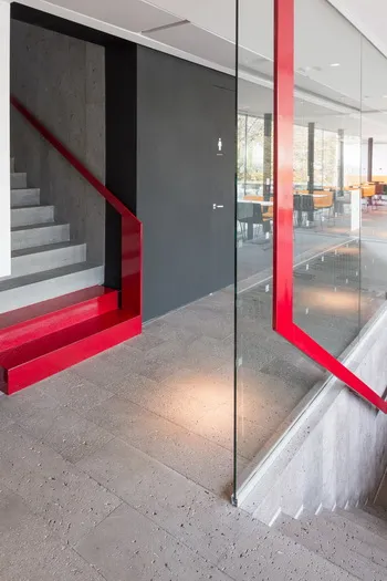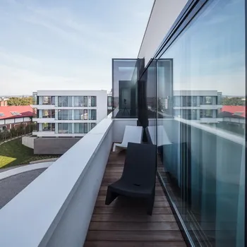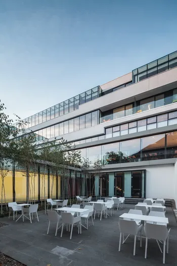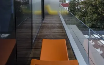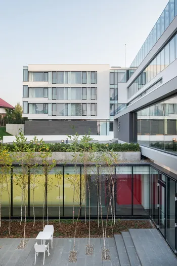 - Pereti transparent si deschidere la terasa in aer liber din curtea interioara;