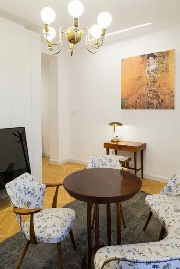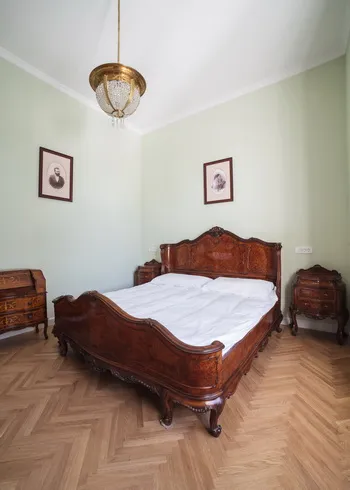 - 3 suite cu suprafata de 34 mp, dormitor si camera de zi foarte spatioase decorate in spiritual epocii anului 1900, zone de relaxare si de lucru